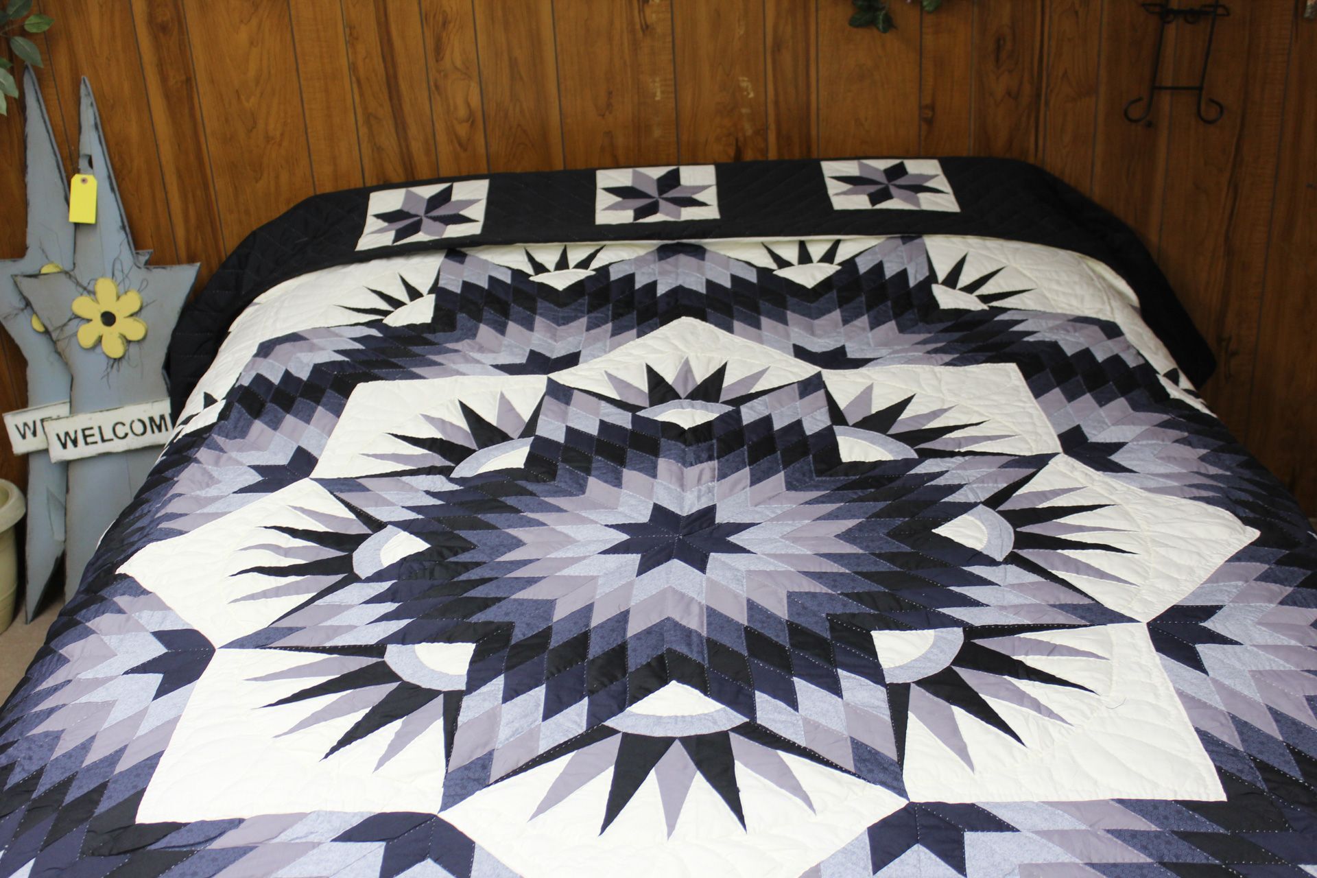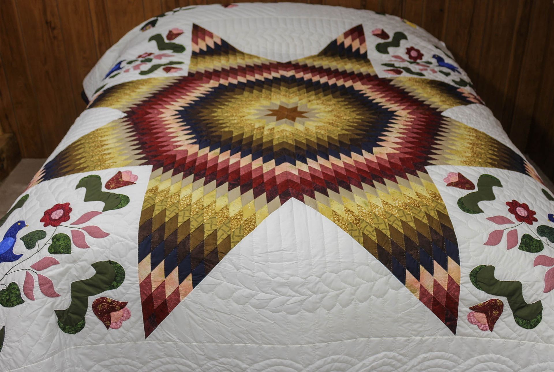 Among the many patterns and styles of quilts they feature, Martin’s carries Floral Medallion, Somerset Star, Triple Broken Star, Blooming Bargelo, Dahlia, Dahlia Log Cabin, Eureka, Lone Star, Moonlit Mountain, Broken Compass Star, and a few others.